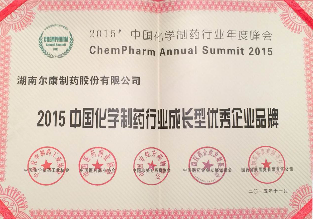 會上發布了2015中國化學制藥行業優秀企業和優秀產品品牌榜,湖南爾康制藥股份有限公司憑借其過硬的產品質量和良好的品牌形象榮耀上榜,成功躋身2015中國化學制藥行業工業企業綜合實力百強。