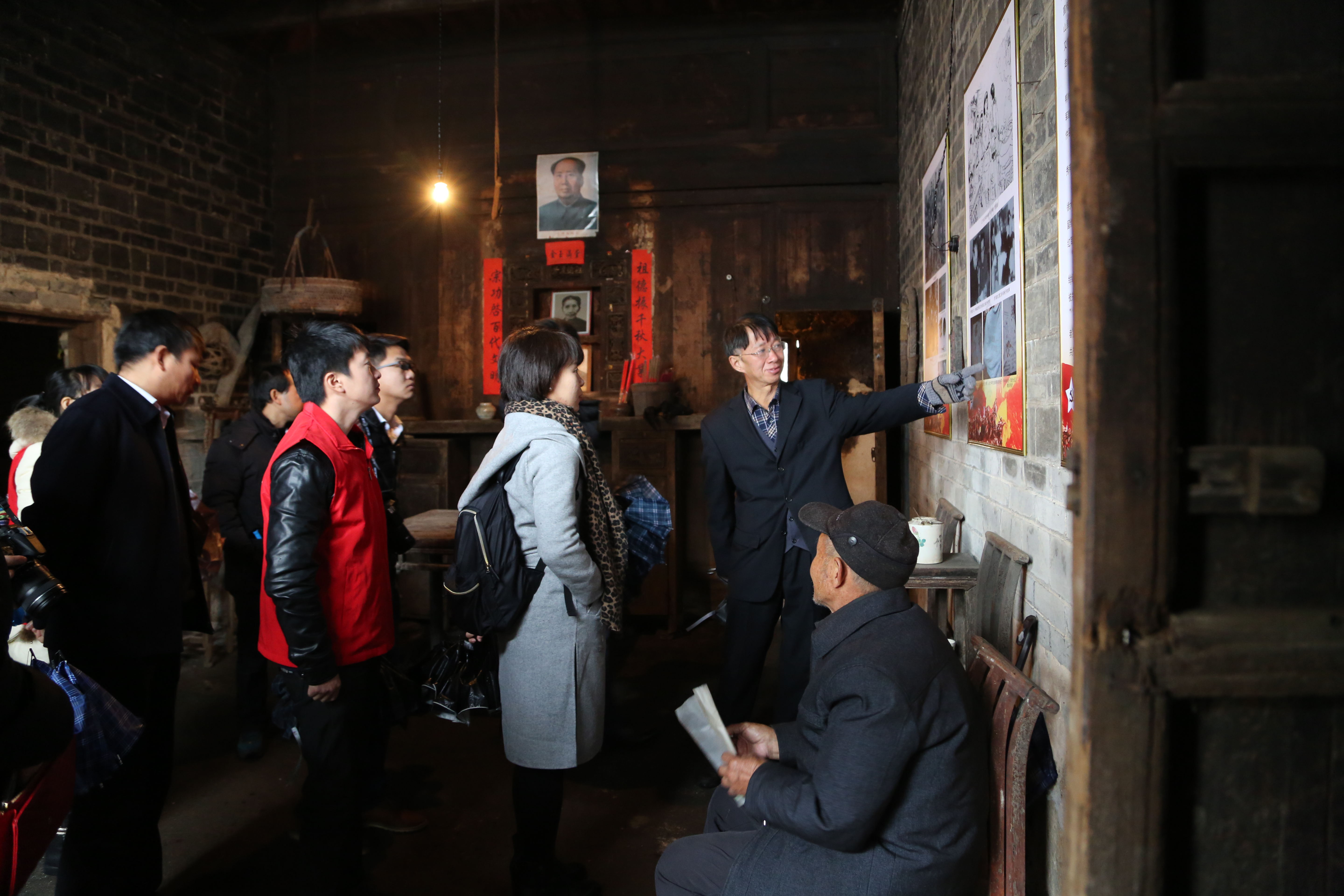 在郴州汝城縣文明瑤族鄉(xiāng)沙洲村徐解秀故居,84歲的徐解秀大兒子再一次向我們講述了“半條被子”這段感人的故事。紅軍到達(dá)沙洲村宿營修整時(shí),徐解秀夫婦將露宿在屋檐下的三個(gè)女紅軍戰(zhàn)士請進(jìn)家中。因家里窮,晚上她們四人擠在一張床上共用一條被子和蓑衣,紅軍臨行時(shí),將自己僅有的棉被剪開贈予了自己的恩人。在聆聽的同時(shí),大家肅然起敬,是真誠、同甘苦、共命運(yùn)的魚水情深深地打動了在場的每一位人,是革命先輩用他們艱辛、生命換來了我們今天的幸福生活。