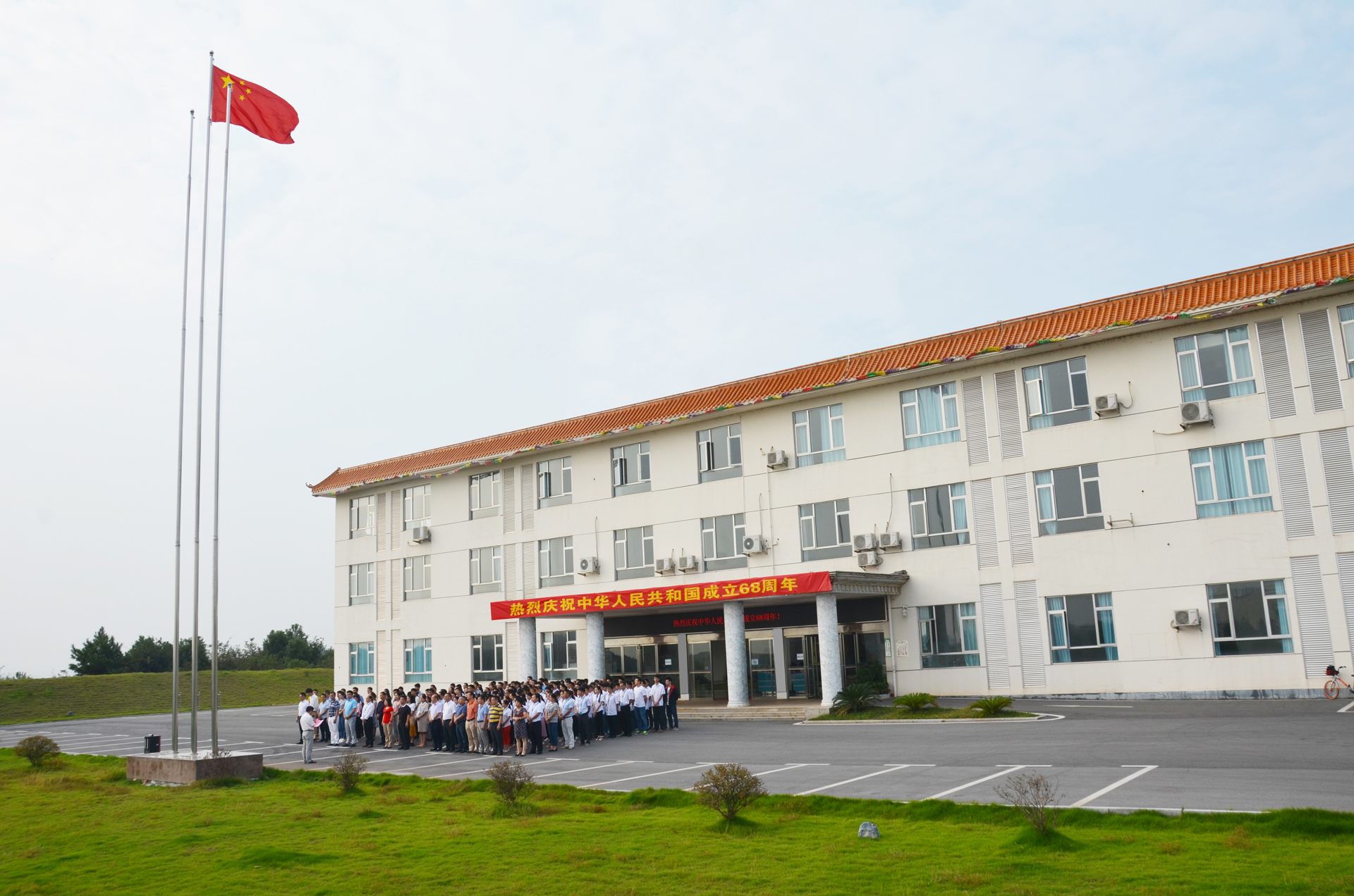 9月30日,爾康制藥在總部廠區舉行慶祝中華人民共和國成立68周年升旗儀式,爾康制藥總部廠區近三百人參加。