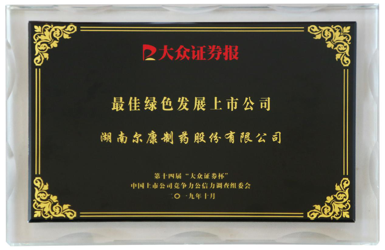 喜訊!爾康制藥榮獲“最佳綠色發(fā)展上市公司”