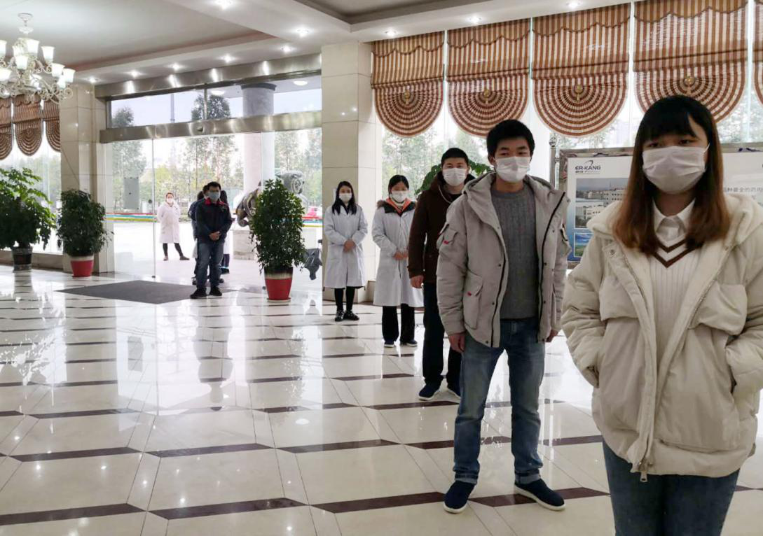公司排隊等候檢測的員工