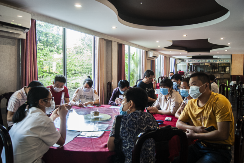 隨后,現(xiàn)場應聘人員從個人能力、求職原因、家庭情況等方面進行分組面試。應聘者中大多數(shù)都是在柬工作中籍人員,是難得的會柬語、對當?shù)厍闆r十分了解的技術工人。受疫情影響,許多工人所在的工廠停產(chǎn)關閉,對他們的生活造成了嚴重的影響,因此他們迫切需要一份穩(wěn)定的工作。