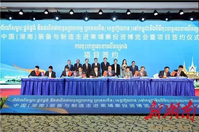 19日上午,杜家毫與柬埔寨國務大臣兼公共工程與運輸部部長孫占托、農林漁業部部長永沙坤等一同出席了中國(湖南)裝備與制造走進柬埔寨投資博覽會暨項目簽約儀式。現場共簽約項目15個,合同金額13.92億美元,涵蓋農業、工程機械、基礎設施等多個領域;中聯重科與柬埔寨農林漁業部達成戰略合作,并向柬方捐贈一批農業機械。杜家毫在致辭中指出,近年來,在習近平主席和西哈莫尼國王、洪森首相的共同推動下,中柬全面戰略合作伙伴關系深入發展,湖南與柬埔寨的交流合作同樣水漲船高、日益密切。湖南是中國制造業大省、中國工程機械之都,裝備與制造暢銷全球150多個國家和地區;柬埔寨是“一帶一路”的重要節點、東南亞通往全球市場的重要通道,推動湖南裝備制造走進柬埔寨,正是優勢互補、互利雙贏的選擇。湖南將認真落實兩國領導人達成的重要共識,深入貫徹《構建中柬命運共同體行動計劃》,與柬埔寨地方政府和有關方面一道,共享“一帶一路”重大機遇,進一步深化雙方在現代農業、基礎設施、文化旅游、教育醫療等領域的交流合作,鼓勵更多湖南優勢企業到柬埔寨投資發展,實現更寬領域、更高水平、更深層次的互利共贏,為推動構建更加緊密的中柬命運共同體貢獻湖南力量。